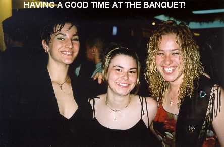 Enjoying the banquest and the party.   Having a good time at the banquet.